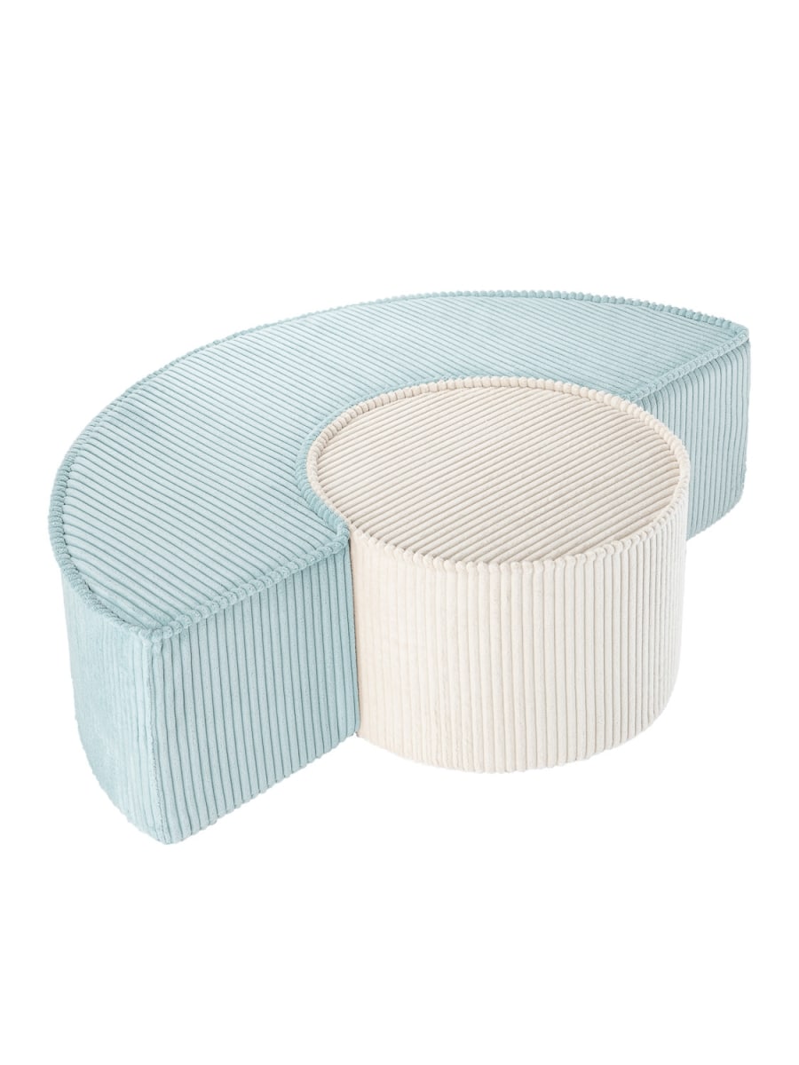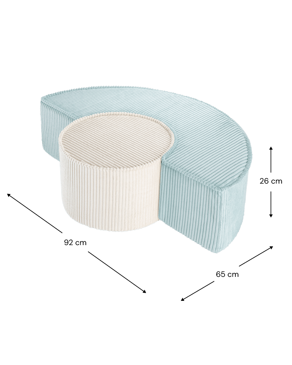 Wigiwama entertainment pouffe set not only encourages kids to use their imagination but also educates them on how to think creatively. The module structure allows the creation of infinite variations of the look: a seating or a table, a play fort, or a little cabin! Outer shell: OEKO-TEX® and GRS® certified wide wale corduroy produced from recycled PET bottles, 100% polyester Filling: ISO-certified polyurethane foam Size: Length 92 cm / Width 65 cm / Height 26 cm Features a zip opening so the cover could be removed and washed according to the washing instructions Made locally in Latvia with care for our planet