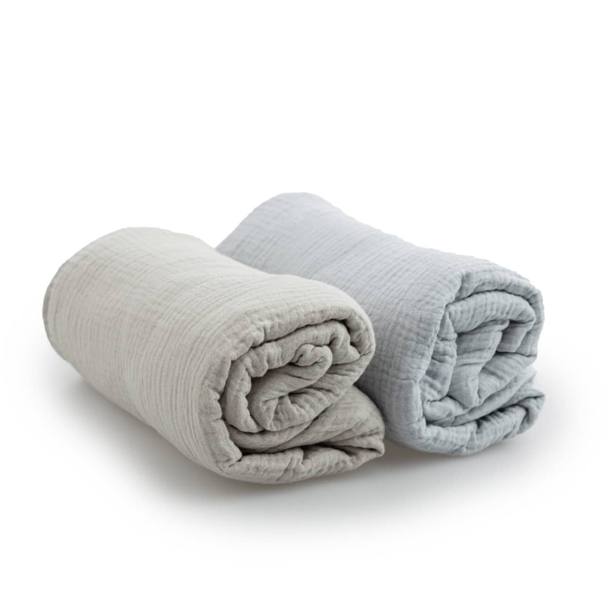 Mousseline crêpe stof, bekend van de hydrofiele doeken, is een licht en zacht geweven stof van getwiste garen, waardoor een herkenbare gekreukte structuur ontstaat. Hierdoor is het niet nodig om de lakentjes te strijken.