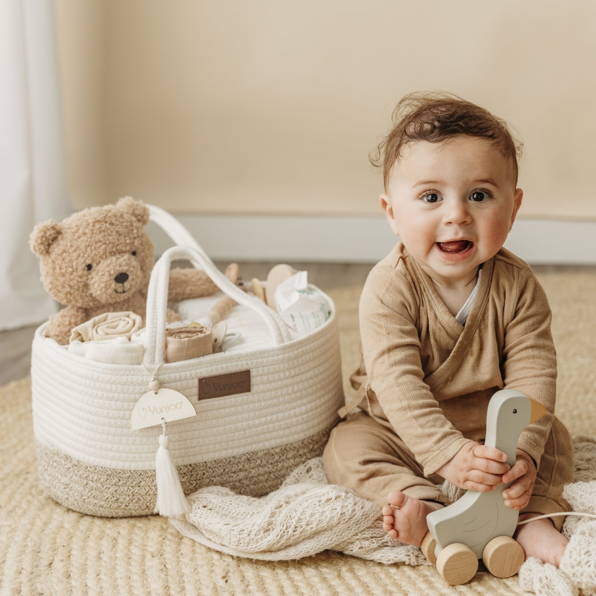De moderne opbergmand van Yunioo is de ideale oplossing voor het organiseren van al je speelgoed en babybenodigdheden.