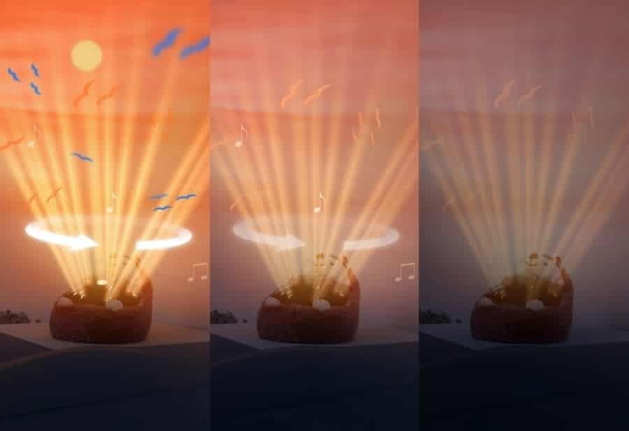 Met de Henry de Egel projector van Zazu verander je jouw kleintje zijn of haar kamer in een magische Afrikaanse zonsondergang. Vliegende vogels en de ondergaande zon worden geprojecteerd in de kamer en zorgen, samen met de Afrikaanse geluiden, voor een kalmerende sfeer in de kamer zodat je kleintje heerlijk in slaap kan vallen.