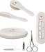 Een praktische verzorgingsset van bébé-jou om toekomstige ouders kado te geven. In deze set zit een kapset, manicureset en een badthermometer. Drie basisproducten die je nodig hebt voor een goede verzorging van je pasgeboren kindje.
