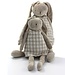 Floppy konijn knuffeldier dat als knuffel gebruikt wordt. Konijn met lange, smalle benen en armen afgewerkt met linnen kleedje.