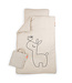 The Lalee baby bedlinen in organic GOTS certified cotton feels so soft and comfy. Create a cozy sleeping environment with the sleepy Lalee and tug in your little one covered in festive confetti print. The baby bedding mathes the quilted Waves bedbumpers. The llama baby bedlinen is packed in a small tote bag that matches the bedlinen and can be used for toys, a change of clothes, shoes or other practical purposes. The bedding has a practical YKK safety zipper in both the pillowcase and the duvet cover. The baby bedlinen has an overall sand tone with Lalee, Birdee and confetti on the front. The backside is sprinkled all over with a cute confetti print matching the tote bag.