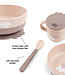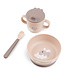 Little ones will enjoy any meal served in this cute Foodie first meal set with a playful motif. Its practical suction base keeps the bowl in place and the spoon has an easy-grip function making it comfortable to feed your baby. The Foodie first meal set is designed for everyday life with kids and is dishwasher and microwave safe. Once the set has served its purpose through countless family dinners, it can be sorted as plastic and recycled into new everyday life products. The powder first meal set is decorated with a playful Happy clouds print. The bowl has a motif of the flying hippo Ozzo while the 2-handle spout cup shows Birdee in the skies. The darker powder elements add a nice two-coloured detail.