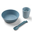 The Kiddish first meal set has the perfect size for little ones starting to explore the world of food. The set includes a Raffi bowl, Croco cup and a Lalee spoon, all shatterproof and designed for everyday use. Suitable for the microwave and dishwasher. The sustainable kids' dinnerware is made in Denmark. After countless family meals, parties and picnics, the tableware can be sorted as hard plastic and recycled to produce new products for everyday life. Raffi and Croco will keep your little one company in this cute set in soft tones of blue. The dinner set has a silky surface and matches the rest of the Kiddish collection