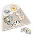 The Lalee wooden peg puzzle helps your toddler practise their fine motor skills and help develop logical thinking and problem solving. The peg puzzle with the cute Llama has five wooden puzzle pieces. Little fingers can grasp the chunky play pieces and help Lalee, Birdee and Antee back into place and the sun on top of the mountain. Oh! The cactus is missing! It has to be placed at the foot of the mountain - now all the pieces are in their right place. The Lalee wooden peg puzzles is made in nice sandy colours and from wood that are responsibly sourced. It is painted with water based paints that are free from harmful subtances - making it safe for your child to use.
