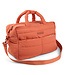 With this cool quilted changing bag you will have enough space to bring all you need for your little one and yourself. A practical changing mat is included, so don't worry when changing diapers on the go. It has pockets both on the inside and outside. The bag has an insulated pocket inside to keep fluids hot or cold. The weatherproof surface protects your essentials from getting wet. The bag and changing mat are made of recycled polyester made from 48 used PET bottles. The soft quilted changing bag and changing mat are designed in a warm papaya colour. The straps on the outside make it easy to attach the bag to the pram. The surface material is easy to wipe clean with a damp cloth.
