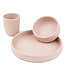 The Silicone dinner set with confetti will add sparkle to every meal. The practical anti-slip and easy grip silicone starter set include a kids' plate, a bowl, and a mini mug. Perfect first-time tableware for babies and toddlers. The rounded inside edges make scooping up food easy. Silicone is soft and durable, heat-resistant and suitable for use in the microwave, oven, freezer and dishwasher. A cute powder confetti set with a plate, a bowl, and a mini mug ready for even the smallest celebration.