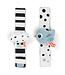 • Happy clouds wrist rattle set consists of 2 soft baby bracelets with blue details • Recommended from 0 months • Perfect for sensory stimulation, body awareness, and hand recognition • Contrasting dots and stripes and colourful elements for visual stimulation • Rattling and crinckling sounds stimulate your child • One bracelet has dots and a blue Birdee, while the other has stripes and a cloud • Velcro closing makes it easy to put on and remove the rattles • Can be used for both wrists and ankels