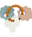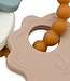 Deze siliconen sleutelbos met de kleuren Wild Rose, Sea Green, Caramel en Nougat is een perfect speeltje voor kleintjes die graag dingen in hun mond doen. Ook erg geschikt voor kindjes die last hebben van beginnende tandjes. Het is dan erg fijn voor je kleintje om ergens op te kunnen bijten. De bolletjes ring werkt verlichtend voor beginnende tandjes. Met de siliconenringen maak je de deze leuke bijtring gemakkelijk vast aan de kinderwagen of autostoel.