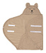 Wikkeldeken met gegarandeerd mega hoge cutenessfactor. De stof is van fluffly vachtlook aan de buitenkant en heerlijk comfortabel zacht aan de binnenkant. Wikkel je baby in deze omslagdoek en sluit de deken met de praktische klittenbandstroken. Zet het mutsje erbij op en zie daar, die schattige oortjes en dito berengezichtje op het mutsje. Echt te lief! Deze omslagdoek is te gebruiken vanaf de geboorte. En ook heel handig te gebruiken in baby’s eerste autostoel. De gordels van de autostoel kun je door de openingen in de deken halen waardoor je baby lekker in de omslagdoek kan blijven zitten. Het is een universele wikkeldeken voor de Maxi Cosi en elk ander merk categorie 0 autostoeltje met drie of vijfpuntsgordel. Verkrijgbaar in diverse kleuren.