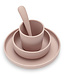 Gezellig samen tafelen met deze fantastische kinder serviesset! De serviesset kan een temperatuur verdragen van maar liefst 230 graden en gekoeld tot wel -20 graden. Het serviessetje is uniek door het soepele materiaal en de handige zuignap aan de onderkant van het bordje en kommetje. Zo kan jouw kleintje nooit meer zijn bordje omver gooien. De set is ook perfect voor jouw dreumes om te leren zelfstandig te eten met een lepeltje en te drinken uit een bekertje. Met wie zit jij graag aan tafel?Leuke kinder serviesset van Jollein. De kinderservies set is gemaakt van 100% siliconen en bestaat uit een bordje, een kommetje, een bekertje en een lepeltje. Onder het bordje en het kommetje zit een handige zuignap en alle onderdelen zijn zowel vriezer, magnetron als oven bestendig. Ook kunnen de siliconen dinersetjes goed in de vaatwasser. De kinderservies set is verkrijgbaar in roze, groen, blauw, nougat, grijs en caramel. Dit product kan in de vaatwasser of met de hand worden gewassen.