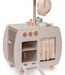 Run uw eigen bistro! Dit gave houten keukentje is rondom te gebruiken. Hierdoor kan er makkelijk door meerdere kids mee gespeeld worden. In deze bistro vindt u een "open"-bordje en een krijtbord voor het menu. Maar ook een magnetron, gootsteen met kraan, koelkast, kookplaat en een grote oven. Een kastje mag niet ontbreken voor al het kookgerei. Aan de afzuigkap kunnen de spatels en de koksmuts hangen! Het werkblad is 51 cm hoog, geschikt voor chefs vanaf 3 jaar.