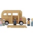 Laat de wielen van deze schoolbus maar draaien. Zitten alle kinderen op hu plek? Zodra de buschauffeur de motor start, begint een reis vol plezier en ontdekking. Of je nu door denkbeeldige steden navigeert of extra passagiers ophaalt, dit houten voertuig brengt je overal waar je maar naar toe wilt. De soepel rollende wielen laten jouw kleintje moeiteloos over de vloer rijden en vriendjes ophalen van elke hoek van de kamer. De deur en het dak van de houten schoolbus kunnen open en de poppetjes passen ook bij het poppenhuis en andere speelsets zoals het vliegtuig en de auto met caravan. Laat je kleintje genieten van een reis vol verhalen met deze veelzijdige houten speelset.