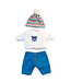 Miniland Miniland - KLEDIJ SET voor pop wit/blauw voor jongen 21cm, 3-delig, trui, broek en muts, plastic zakje met kleerhanger, 3+