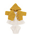 Miniland Miniland - KLEDIJ SET voor pop wit/oker voor meisje 21cm, 3-delig, kleedje, vest en broekje, met kleerhanger, 3+