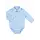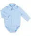 Katoenen gestreept lichtblauw wit bodyhemdje met witte knopen, lange mouwen, eenzelfde kleur geborduurd natini logo op de borst en onderaan drukknopen.