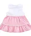 Katoenen licht roze met witte jurk. De bloemetjes op de taille en het rokdeel zorgen voor de extra speelse en lieve toets. Deze jurk heeft een ritssluiting achteraan. Deze jurk kan mooi gecombineerd worden met het bijpassend giletje in wit of roze. Lees meer..