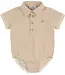 Beige Melange polo in bodyvorm met beige knopen en een beige geborduurd logo. De ribboord aan de mouwen is gemaakt van crème en beige. Lees meer..