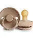 FRIGG fopspeen details 100% ontworpen in Denemarken 100% vervaardigd in Denemarken Om veiligheidsredenen ondergaat elke FRIGG fopspeen diverse tests die de stress simuleren waaraan een fopspeen wordt blootgesteld Met een nieuw click-lock® systeem Materialen schild: Polypropyleen (PP) Veiligheidsnorm: EN1400 + A2 test MAAT 1 Materiaal speen: 100% natuurrubber Maat speen: 27 mm Aanbevolen leeftijd: 0-6 maanden MAAT 2 Materiaal speen: 100% natuurrubber Maat speen: 30 mm Aanbevolen leeftijd: 6-18 maanden Onderhoudsinstructies: Leg de fopspeen in een kom en overgiet deze met kokend water. Laat 3-5 minuten weken. Niet langer dan 5 minuten onderdompelen. Haal de fopspeen eruit en leg hem op een plat oppervlak om aan de lucht te drogen. Gebruik geen sterilisatoren, magnetrons of vaatwassers. Voor optimale veiligheid en hygiëne raden we aan om de fopspeen na 1-2 maanden consequent gebruik weg te gooien. Controleer de fopspeen altijd voor gebruik en gooi hem weg bij de eerste tekenen van schade of slijtage.