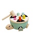 Het bestaat uit een schattige schildpad met kleurrijke houten stokjes op zijn rug. Als kinderen met een houten hamer op de kleurrijke stokjes tikken, komen de poten, het hoofd en het staartje uit het schild van de schildpad. Het is niet zo eenvoudig om de juiste stick te raken. Gelukkig is de hamer ook voor kleine kinderhandjes goed vast te pakken. Het oppervlak van de slagzijde is ook bedekt met vilt, wat de slaggeluiden dempt - dus kinderen hebben veel speelplezier en de oren van de ouders zijn ook blij. De game heeft een schattig ontwerp van een schildpad in trendy unisex-kleuren en tijdloze patronen in contrasterende zwart-wittinten die peuters fascineren en aanmoedigen om te spelen.