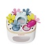 Slimme kinderen vanaf 12 maanden sorteren de wortels van verschillende lengtes en diktes in felle kleuren in de bijpassende gaten. Gekleurde ringen rond de gaatjes helpen kinderen om het juiste gaatje te vinden. In het midden van de doos bevindt zich ook een hongerige konijnenkop met zijn bek wijd open. Kinderen voeren het konijn op een slimme manier met de kleurrijke wortels en imiteren de rol van de ouders. Of het nu dik of dun, blauw of geel is: de kleintjes leren over kleuren met het sorteerspel, oudere kinderen wijzen de wortelen correct toe aan de gaten met verschillende dieptes, afhankelijk van hun grootte. Daarbij trainen ze de fijne motoriek, hand-oogcoördinatie en logisch denken.
